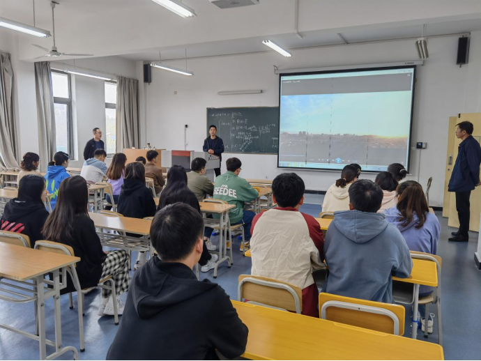 蔡正旺介绍了宣讲会的流程,对我院专业设置、人才培养及毕业生情况做了简短介绍。鼓励毕业生积极投递简历,特别要求考研学生树立考研就业两不误的思想,用正确的就业观把握就业机会。