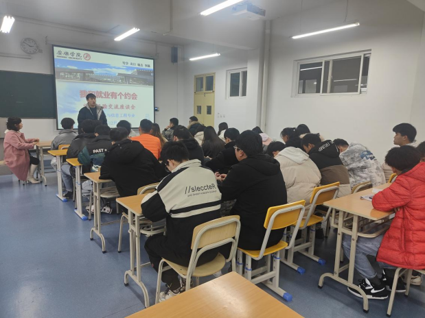2021年12月11日下午,BEAT365英国官网在江北校区教学楼1318教室召开了“我和就业有个约会”为主题的就业经验交流座谈会。此次交流座谈会邀请了2018级两名已经成功就业的学生分享他们的求职经历,电子信息工程专业的毕业班全部学生参加了此次会议。会议由辅导员成英丽老师主持。