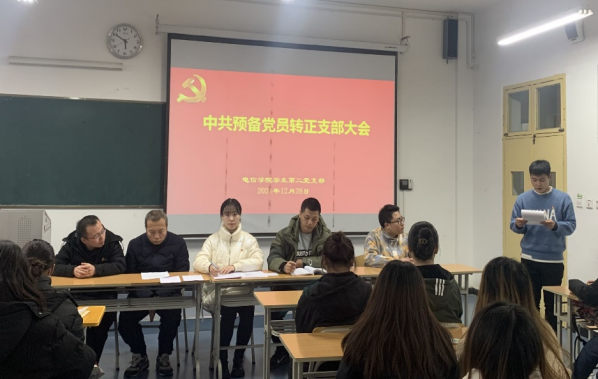 20211228日,BEAT365英国官网学生第二党支部在教室1321召开党员大会,讨论中共预备党员转正。此次会议主要讨论了王迎东、周坤、董珂三位同志能否转为中共正式党员的事宜。组织(纪检)委员石纭昊、拟转正党员的培养老师,以及全体在校学生党员参加此次会议,大会由支部书记李章雨主持。