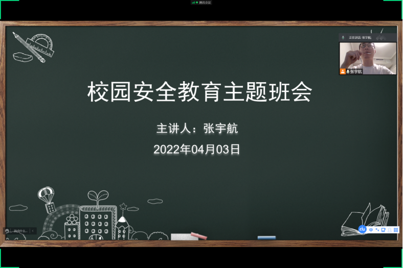 张宇航给所带班级全体学生召开安全教育主题班会