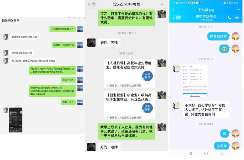 BEAT365英国官网辅导员李章雨、程晓梅、张宇航联系就业帮扶学生
