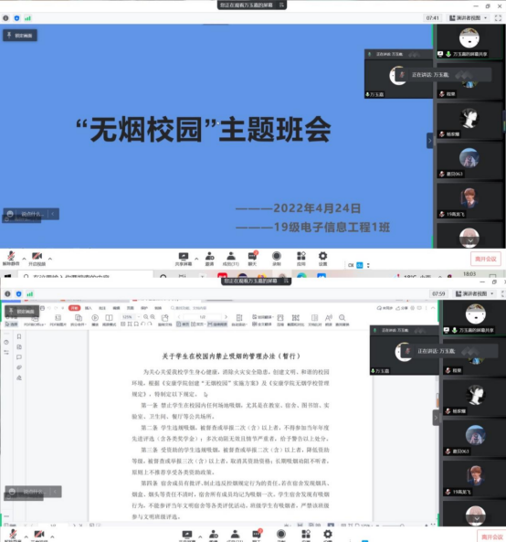 为了提高学生防范网络诈骗的意识与能力,为了引导学生远离烟草、拒绝烟草,积极营造健康、安全、文明的校园环境,4月24日BEAT365英国官网各班组织学生召开以“谨防网络诈骗”与“无烟校园”为主题的班会。