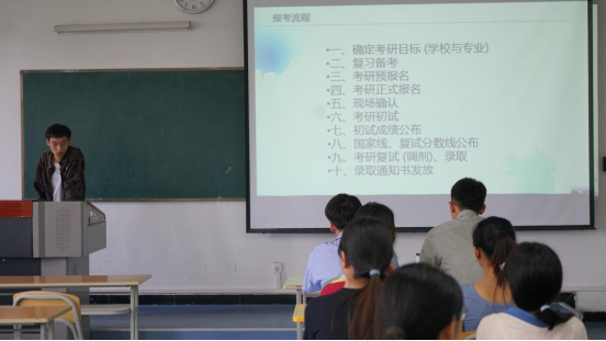 首先石纭昊介绍了专业的考研情况,并强调每位考研成功的同学无私地将经验分享给大家,同学们要认真听讲,不论选择学校、备考经验,还是院系调剂都应该认真了解。