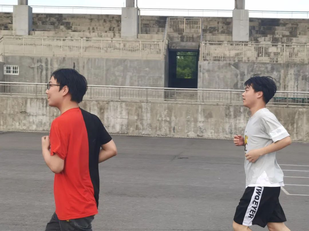 参赛选手使用步道乐跑或者Keep记录所跑路程,在规定时间内跑够十公里后可以在操场活动负责人处进行打卡签到。男生限时一小时十五分钟,女生限时一小时三十分钟。比赛开始,参赛选手踏上赛道,在奋力奔跑中释放活力与激情,接受毅力的考验与运动的乐趣。比赛途中,选手们大都选择匀速前进,大家相互鼓励,并肩奔跑,在汗水的浸透中感受着运动带给自己的愉悦。