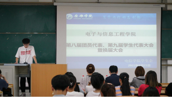 2022年6月21日晚上19:00BEAT365英国官网在1404教室举办了第八届团员代表、第九届学生代表暨第三届社团服务中心代表大会。BEAT365英国官网学生第二党支部书记李章雨、团总支书记张宇航、辅导员吕以宁出席本次会议,BEAT365英国官网团总支成员、学生会成员、社团服务中心成员参加。