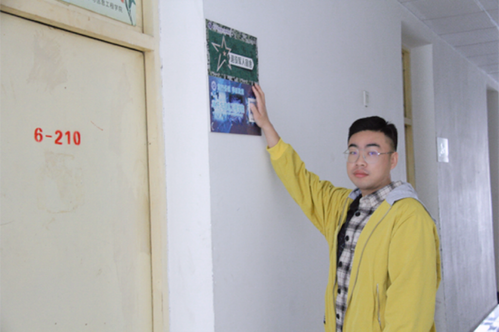 (翟子轩老师为退役大学生士兵宿舍授牌)