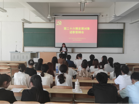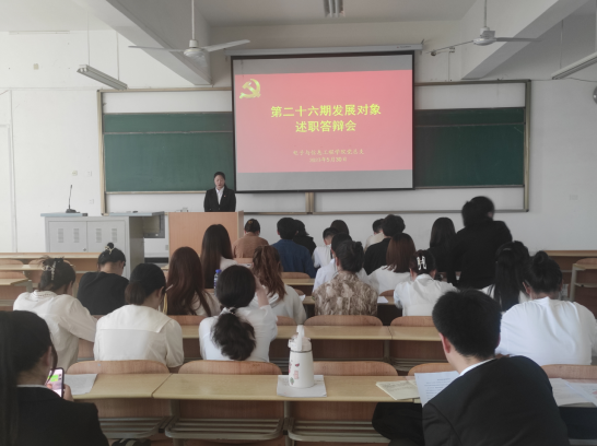 在自我答辩环节,发展对象就个人基本情况、入党动机、个人思想发展变化过程、所获荣誉奖励等方面进行简要介绍。在评委提问环节,各位老师就关于党的性质、宗旨、指导思想、党员的权利和义务、习近平新时代中国特色社会主义思想、社会主义核心价值观、党的基本路线、党的二十大精神等内容和学生如何提高角色意识、履行自身职责,正确处理好学习和工作的关系、如何处理好打游戏问题、如何处理好宿舍矛盾,如何处理好个人与集体的关系等方面展开提问,进一步考察了学生的思想政治素质、对中国共产党的认识、对党的基本理论知识和时事热点的掌握程度。考察学生的工作能力和工作水平,不断端正学生的入党动机,为党组织选拔政治上可靠、专业上合格的新鲜血液。