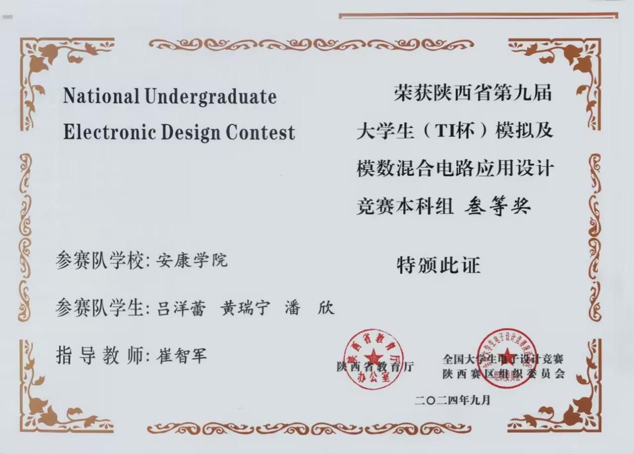 近日,陕西省教育厅、全国大学生电子设计竞赛陕西赛区组织委员会公布了2024年全国大学生电子设计竞赛陕西区赛(暨陕西省第九届大学生模拟及模数混合电路应用设计竞赛)获奖名单,BEAT365英国官网学子获得了本科组三等奖。