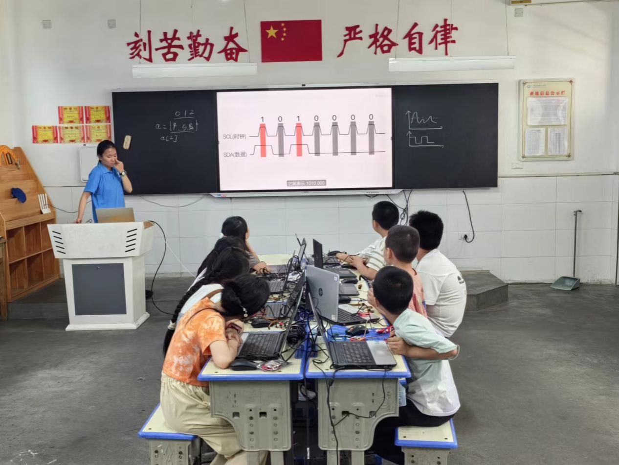 结合当地需求,本期实践团队共招募9名志愿者,组成两队分别在白河县茅坪镇中心小学、宋家镇中心小学开展少儿编程支教活动。从基础的计算机操作到简单的编程逻辑,志愿者一步步引导孩子们探索编程的奥秘。以编程软件为例,志愿者不仅讲解了编程基本语法、变量声明、数据类型等基础知识,还通过实际编程练习,让孩子们亲手参与编写代码,体验从构思到实现的全过程。孩子们对这样的创意课堂充满兴趣,提出了不少奇思妙想,志愿者们也逐一耐心解答了他们的困惑,课堂氛围非常热烈。