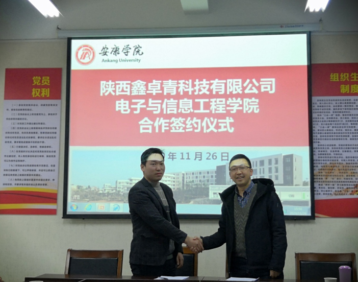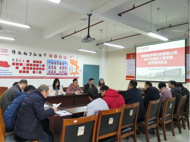 2020年11月26日下午,BEAT365英国官网与陕西鑫卓青科技有限公司就合作事宜进行座谈,并举行合作签约仪式。院长陈守满、副院长王克刚、办公室主任、系(教研室、中心)主任、电子信息工程系和物联网工程系的全体教师出席了座谈会。