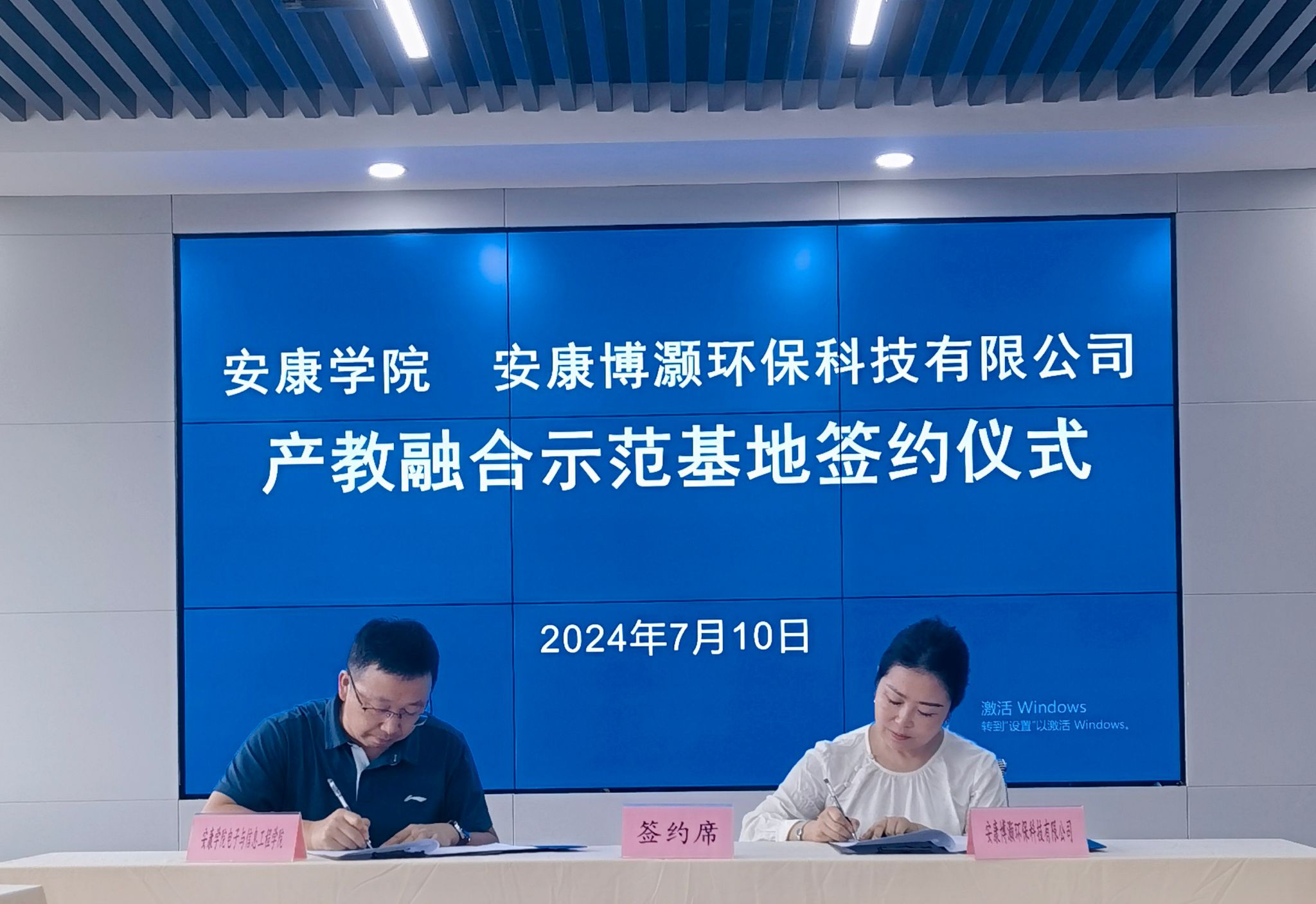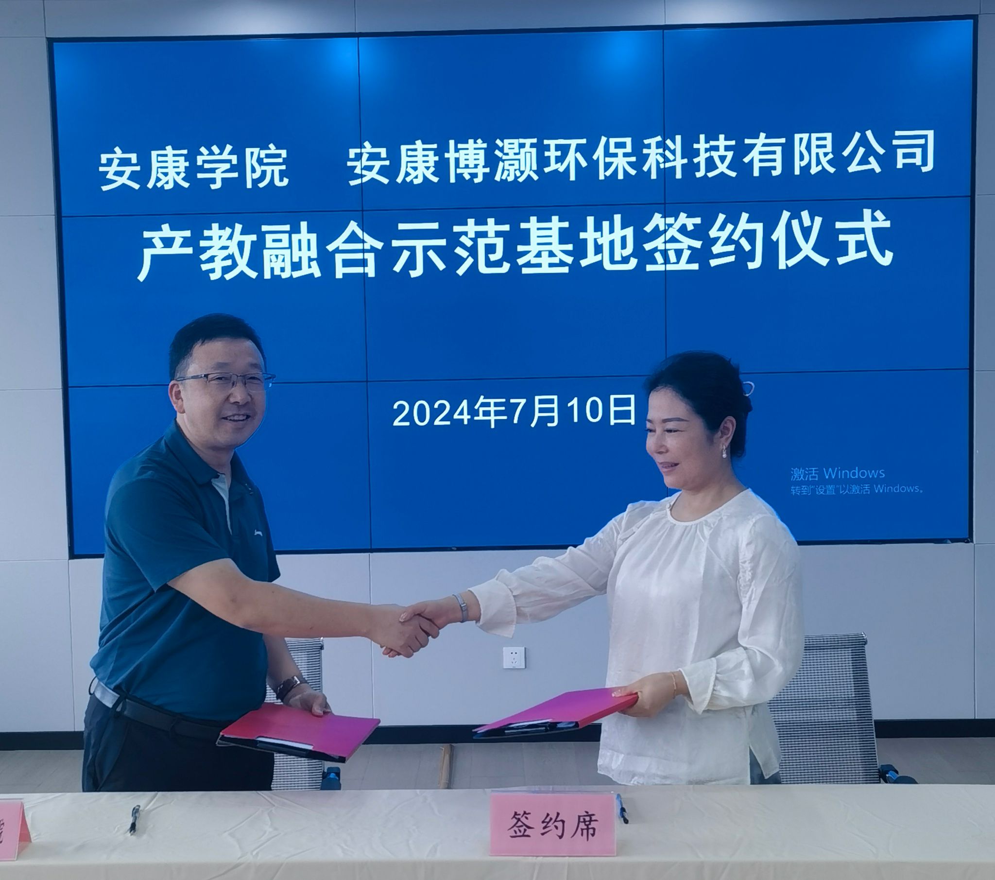 2024年7月10日,在安康博灏环保科技有限公司培训中心,BEAT365英国官网与安康博灏环保科技有限公司产教融合签约仪式隆重举行,副院长王克刚、安康博灏环保科技有限公司董事长刘燕出席签约仪式。