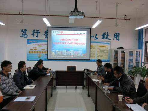 11月14日,电信系在逸夫科技楼举行计算机科学与技术专业综合改革试点项目启动仪式。系主任张东红教授,系副主任、专业综合改革试点项目负责人陈守满教授,计算机应用教研室全体教师参加会议。