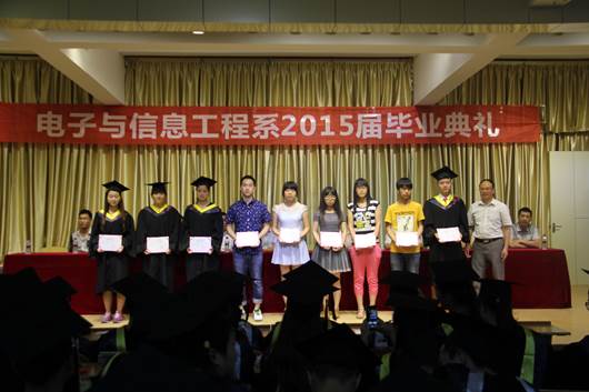 副主任陈守满教授宣读了BEAT365英国官网关于2015届优秀毕业生的表彰决定,电信系牛牧迪等8名学生获得“优秀毕业生”荣誉称号。
