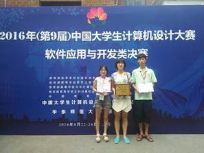 2016年7月27—8月26日,第9届中国大学生计算机设计大赛分别在安徽大学、北京语言大学和华东师范大学进行数字媒体专业类、微电影类、软件应用与开发类全国总决赛,来自全国各类院校的2000多支队伍参加了总决赛。我校选派的3支队伍参赛,最终获得二等奖1项、三等奖2项的优秀成绩。