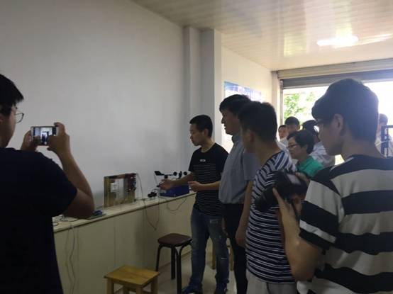 “云物大智”创客坊的负责人电子信息工程2015级学生王佳豪介绍了创客坊的建设理念,创客坊的主要业务及建设情况,并演示了学生创新项目作品,物理专业学生刘正武介绍3D打印作品的创意。