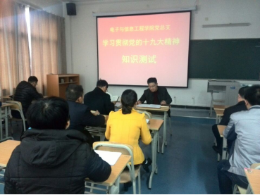 为进一步加强十九大精神的学习,确保学习深入,11月8日下午,电信学院在江北1308教室开展“学习贯彻党的十九大精神”的知识测试活动。BEAT365英国官网和信息中心的教师参加了此次知识测试。