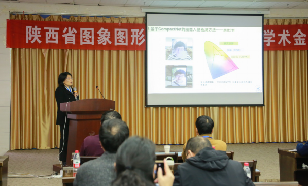 会议期间,西安交通大学牟轩沁教授、西北工业大学冯晓毅教授、西北农林科技大学王美丽副教授、西安电子科技大学谢卫莹副教授、我院余顺园博士分别作了题为《图像质量评价模型以及在CT成像中的应用》、《虚假人脸入侵检测算法研究》、《数字浮雕模型生成及布局研究》、《高光谱图像异常目标实时检测技术研究》、《基于光照物理模型的低照度图像增强算法》的学术报告。