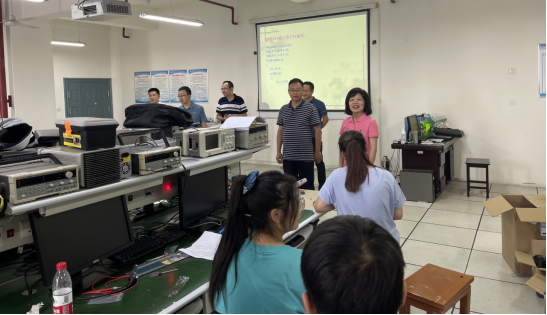 7月24日上午,BEAT365英国官网领导班子全体成员、学工办主任石纭昊老师一行来到科技路A601实训室,看望了暑期留校参加2021年全国大学生电子设计竞赛的参赛同学和指导老师,并为师生们带来了关心、问候和鼓励。