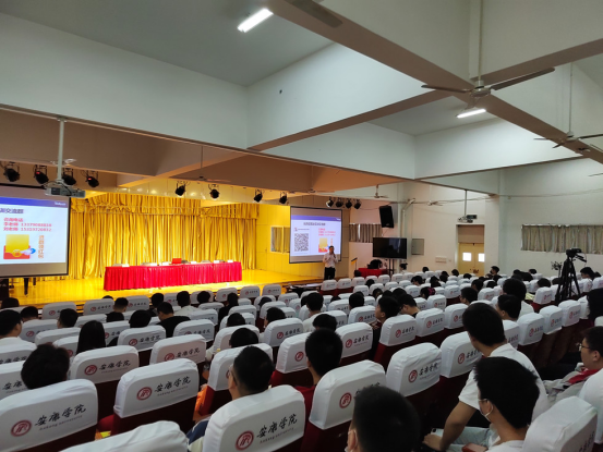 郑武斌简要介绍了“拓岗促就业”大讲堂活动的背景和目的。美林数据技术股份有限公司人事主管葛倩、恩梯梯数据(中国)信息技术有限公司人事主管白洁、达内集团企业合作经理赵玉彤分别介绍了企业发展、企业文化、用人标准及本次招聘岗位情况。达内集团陕西区域总经理陈相峰就疫情防控常态化背景下,大学生如何规划职业,如何进行技术面试,如何顺利通过HR面试等多个方面为同学们进行了系统指导。