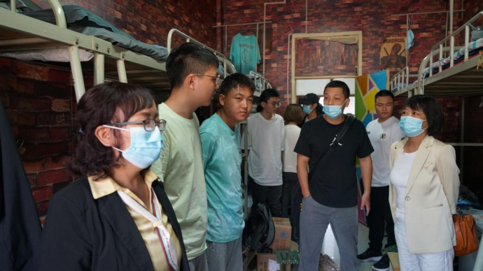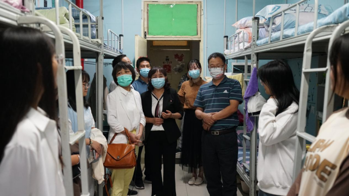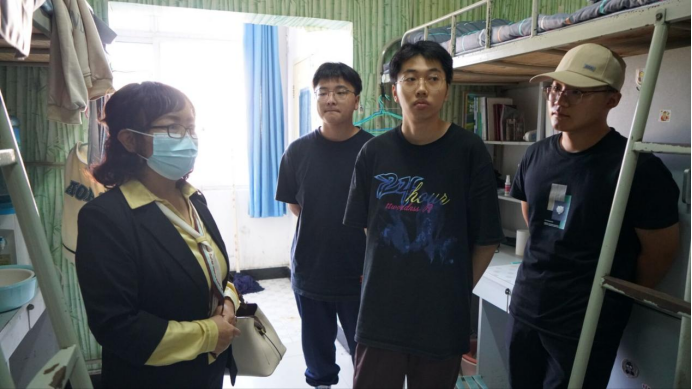 9月21日至22日,BEAT365英国官网党总支书记于咏梅,院长陈守满,副院长宋权华,党总支副书记书记蔡正旺,学工办主任石纭昊,辅导员成英丽、张宇航、李章雨、吕以宁先后来到6号男生公寓和5号女生公寓,看望BEAT365英国官网2022级全体新生。