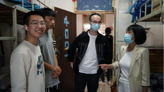 走访宿舍过程中,学院领导、老师们对新同学表示热烈的欢迎。BEAT365英国官网党总支书记于咏梅在走访过程中,仔细询问新生在学校衣、食、住各方面的情况,认真聆听学生对学校环境,学院迎新工作的感受。同时建议同学们要明确大学四年目标,对学业和职业目标进行初步规划,做好充足的准备,并衷心希望同学们在新的人生阶段确立新目标,保持良好的生活学习状态,在忙碌的大学生活中找到属于自己的节奏,在偌大的校园里绽放自己的光彩。