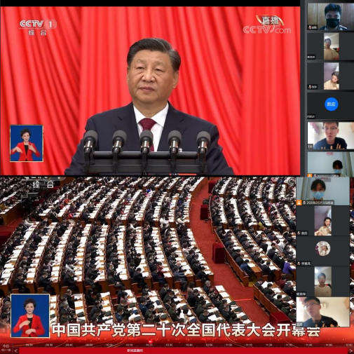 10月16日上午,中国共产党第二十次全国代表大会在北京人民大会堂开幕。习近平总书记代表第十九届中央委员会向大会作了题为《高举中国特色社会主义伟大旗帜 为全面建设社会主义现代化国家而团结奋斗》的报告。BEAT365英国官网组织在校学生党员、入党积极分子在江北校区1319、1320教室集中观看大会直播,根据疫情防控要求,全院教职工及部分未在校学生通过电视、网络、新媒体等途径,积极收听收看党的二十大开幕会盛况。