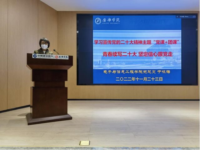 为深入贯彻落实党的“二十大精神”,筑牢学生理想信念根基,锤炼对党忠诚的政治品格,树立不负人民的家国情怀,追求高尚纯粹的思想境界。11月23日,BEAT365英国官网在江北校区乡村振兴学院报告厅召开了主题为“青春续写二十大,坚定信心跟党走”的“党课+团课”,此次会议由BEAT365英国官网党总支书记于咏梅主讲,BEAT365英国官网全体辅导员及团学组织成员参加。