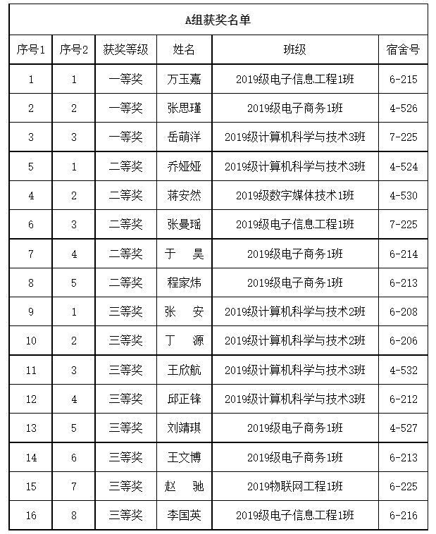 获奖名单如下: