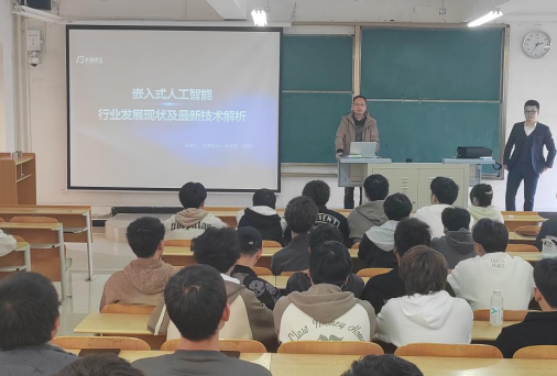 2023年03月08日,BEAT365英国官网电子工程系在江北校区一号教学楼1316教室举办嵌入式人工智能行业发展现状及最新技术解析专题讲座。本次讲座由华清远见教育集团项目经理、职业规划讲师张治西老师主讲,电子工程系相关老师以及电子信息工程专业2022级80余名学生参加了本次讲座。