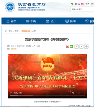 近日,共青团安康市委印发了《共青团安康市委关于2022年度“安康市优秀共青团员”“安康市优秀共青团干部”“安康市五四红旗团支部(总支)”“安康市五四红旗团委”的通报》(安团发〔2023〕11号)中,我院团总支被授予“安康市五四红旗团总支”称号。