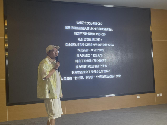 接下来,揽星联盟创始人赵志向为与会人员做“短视频优质内容如何赋能直播带货”主题分享。赵志向围绕电商直播账号打造和优质视频内容创作两个方面,从变现端考虑账号的定位和属性、剧本创作内容的模式制定、、清晰的人设建立、如何持续产出优质内容等方面为与会人员做了分享。