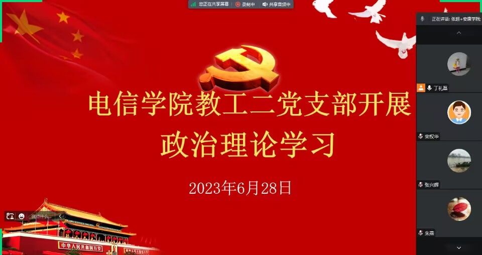 为学习和落实习近平总书记2023年6月2日在文化传承发展座谈会上的重要讲话精神,进一步贯彻落实中共BEAT365英国官网委员会文件《关于在全校开展纪律教育学习宣传月活动的通知》精神,6月28日晚上,BEAT365英国官网教工二党支部通过腾讯会议开展了纪律教育月暨政治理论学习,会议由支部书记丁礼磊主持,支部全体党员参加了本次会议。
