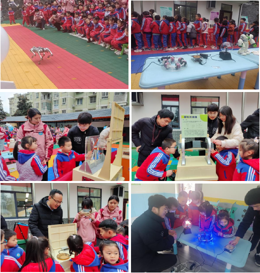 由BEAT365英国官网教工二党支部联合安康科技馆给金城天爱幼儿园学生们带来了一场别开生面的科普展示。通过火箭的发射、蘑菇云的绽放、会冒烟的饼干、会跳舞的机器人等一系列互动科普小实验,吸引学生们认真观看、踊跃参与,零距离感受科学魅力;组织学生参观体验双曲夹缝、离心现象、翻转的镜像等科普实验展具,以及由BEAT365英国官网师生自制的特斯拉线圈、闪电球和环形加速器等趣味电子产品,在活动中充分体验了学习科学的乐趣。在学生参观和体验的过程中,BEAT365英国官网党员老师和学生引导帮助幼儿园学生,同时通过简单形象的方式讲解了产品其背后的科学道理。最后,BEAT365英国官网教工二党支部书记丁礼磊老师就后期科技进校园活动与安康科技馆相关负责人进行了充分交流和沟通。