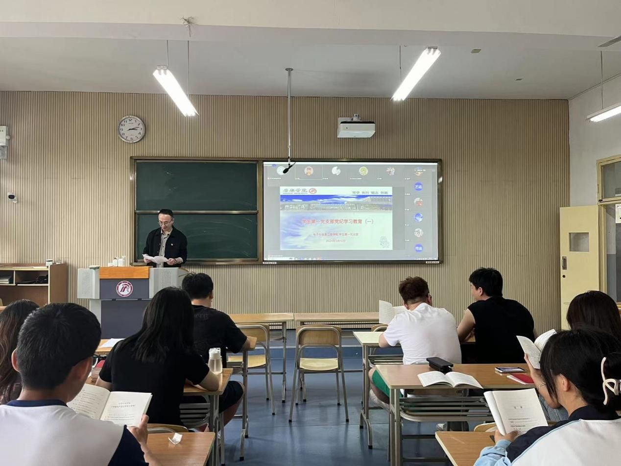 接着,组织(纪检)委员张宇航老师带领大家学习了中共中央印发《中国共产党纪律处分条例》的通知。他详细解读了条例的指导思想、基本原则和主要内容,并结合实际案例进行了生动讲解。通过学习,党员们对党的纪律处分制度有了更加深入的了解和认识。