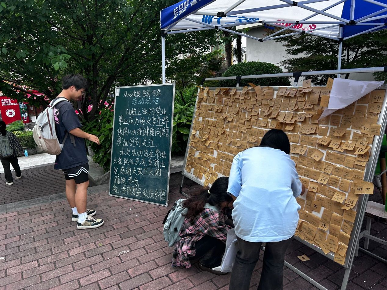 为帮助学生健康发展,坦然面对负面情绪,更好地把握生活节奏,BEAT365英国官网于2024年5月7日至9日在江北校区5、6号公寓楼中间举办“从心出发,告别焦虑”活动,全校约一千余人次参与此次活动。