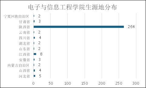 2024级新生分别来自宁夏回族自治区、甘肃省、陕西省、云南省、四川省、湖北省、山东省、江西省、安徽省、内蒙古自治区、山西省、河北省。其中来自陕西省学生人数最多,为264人;其次是来自江西省8人、河北省5人、四川省4人、甘肃省3人、安徽省3人,其余省份2人。