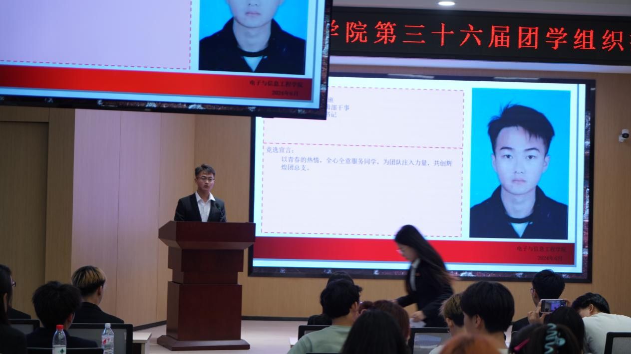 会议最后,张宇航做总结讲话。他对上一学年团学组织的工作成果给予了高度评价。他指出,团学组织是学生发展的重要平台,参与学生工作对学生发展大有益处,本次换届大会的成功举办,是一段责任的结束,更是新使命的开始。他希望在新的一学年中,新一届负责人能满载对工作的热情,信心百倍,勇往直前,开拓创新,用汗水和智慧谱写新的篇章!以踔厉奋发和勇毅前行的态度,创造电子与信息工程学院新的辉煌!。
