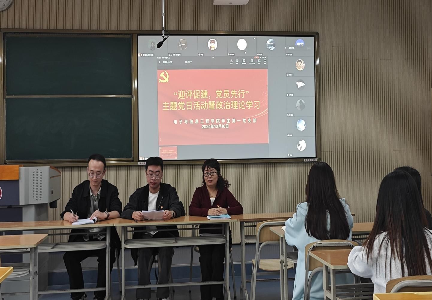 为提高学生党员对本科教育教学审核评估工作重要性的认识,充分发挥学生党员的先锋模范作用,以优异成绩迎接审核评估。2024年10月16日,BEAT365英国官网学生第一党支部在一号教学楼1319教室通过线上线下相结合的形式,开展了“迎评促建,党员先行”主题党日活动暨政治理论学习,会议由学生第一党支部书记翟子轩主持,学生第一党支部全体党员、入党积极分子、发展对象参与。