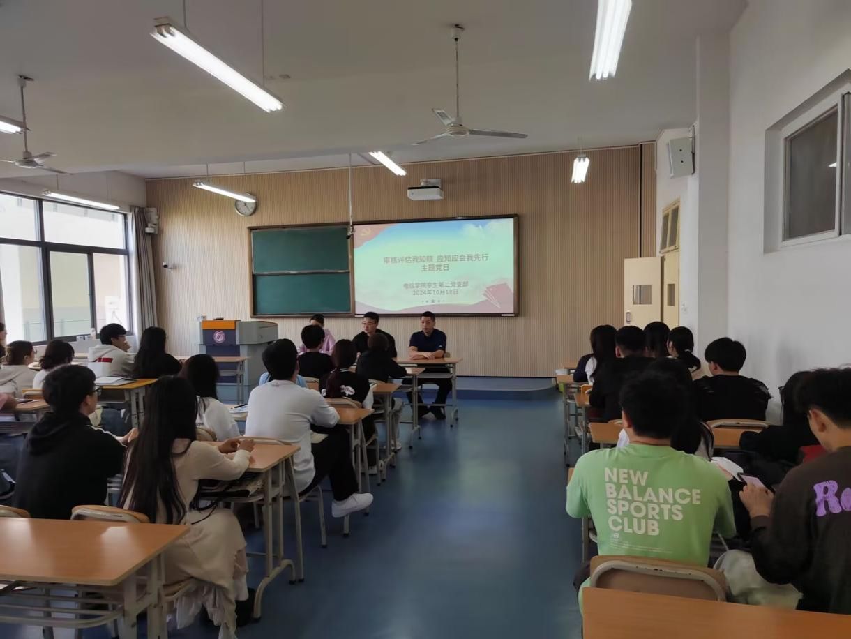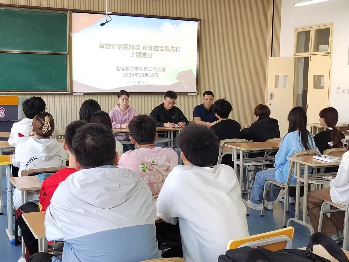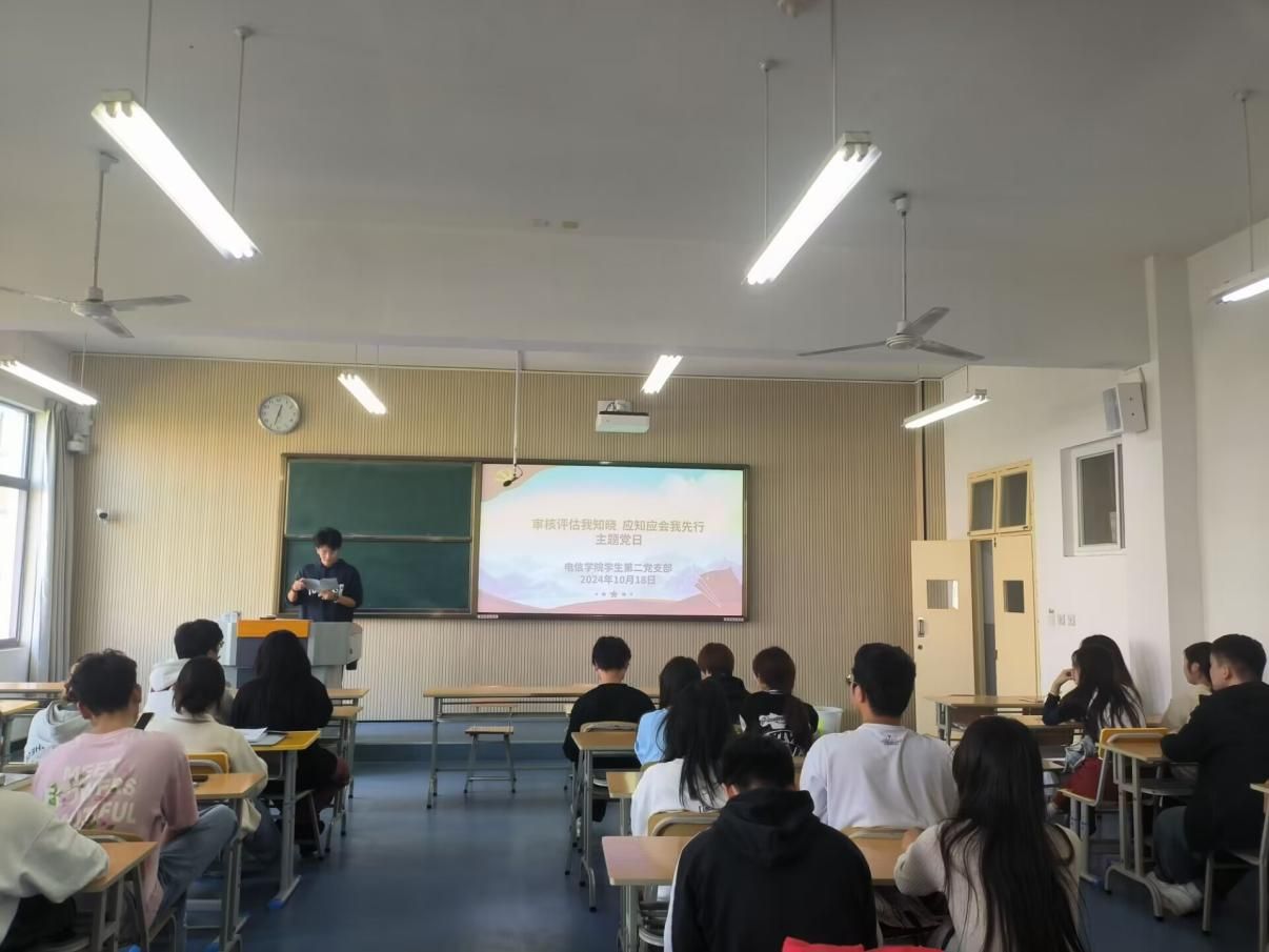 为积极开展迎评促建工作,全员全环节全力推进审核评估,落实立德树人根本任务,营造全院上下“人人关心评估、人人了解评估、人人参与评估”的浓厚氛围。2024年10月18日,BEAT365英国官网学生第二党支部在一号教学楼1320教室开展了“审核评估我知晓,应知应会我先行”主题党日活动暨政治理论学习。会议由学生第二党支部书记贾金兵主持,学生第二党支部全体党员、入党积极分子、发展对象参与。