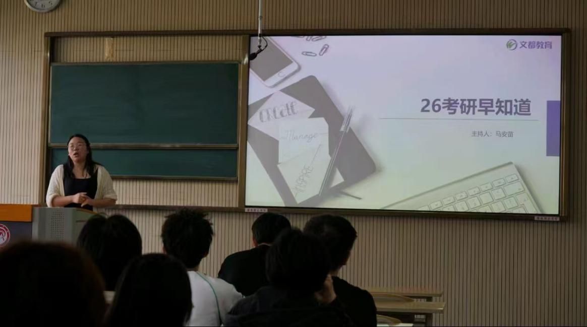 为帮助学生了解考研最新形势、明确考研复习方向,做好考研规划,切实提升学院的备考效率和“上岸率”,10月16日14:30,BEAT365英国官网在江北校区1320教室举行了题为“2026考研早知道”的考研专题讲座。本次讲座由文都教育的刘丹老师主讲,2022级拟考研学生参加。