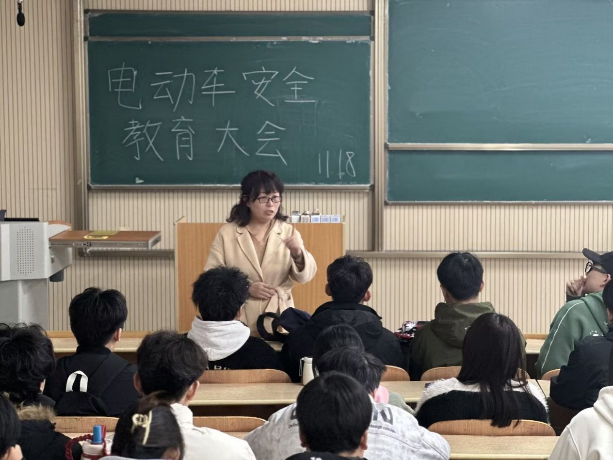 “道路千万条,安全第一条。”各辅导员又向学生们讲解在校园内应如何安全行驶电动车。辅导员老师们强调道,在校园内骑行电动车首先要了解并遵守学校的规章制度,骑行时佩戴符合标准的安全头盔。骑行前做好车辆的安全检查。骑行过程中与前车保持安全距离,以防追尾;时刻关注周围环境,特别是行人和障碍物;遇到行人或转弯时减速慢行,主动避让。骑行结束后,要将电动车停放在指定的停车区域内;整齐摆放车辆,不影响他人通行;使用专用充电桩进行充电,避免私拉电线。通过学习电动车交通和消防安全知识的相关案例,使同学们更加清楚地了解了电动车交通和消防安全的重要性。