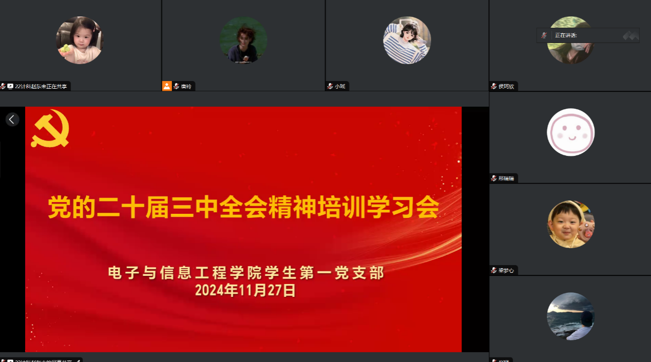 活动伊始,学生第一党支部支部书记翟子轩阐述了本次活动的背景和重要意义。支部全体党员一同观看了《深入学习贯彻习近平总书记关于全面深化改革的一系列新思想、新观点、新论断和党的二十届三中全会精神》的视频课程。视频中,从党的二十届二中全会以来党和国家事业取得的成绩;党的二十届三中全会主题;进一步全面深化改革的重要性和必要性;习近平总书记关于全面深化改革的一系列新思想、新观点、新论断;进一步全面深化改革的重大原则;进一步全面深化改革的重大决策等六个方面对党的二十届三中全会精神进行了全面、系统、深入地解读,深刻剖析了全面深化改革的内涵与时代要求。
