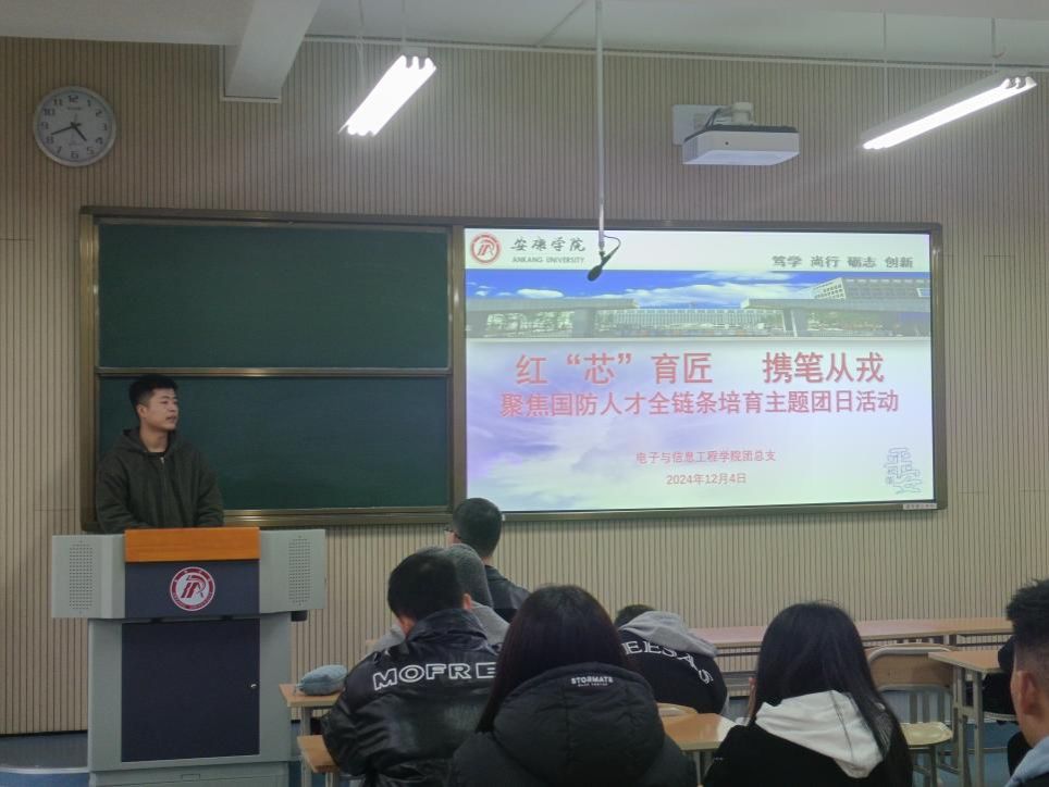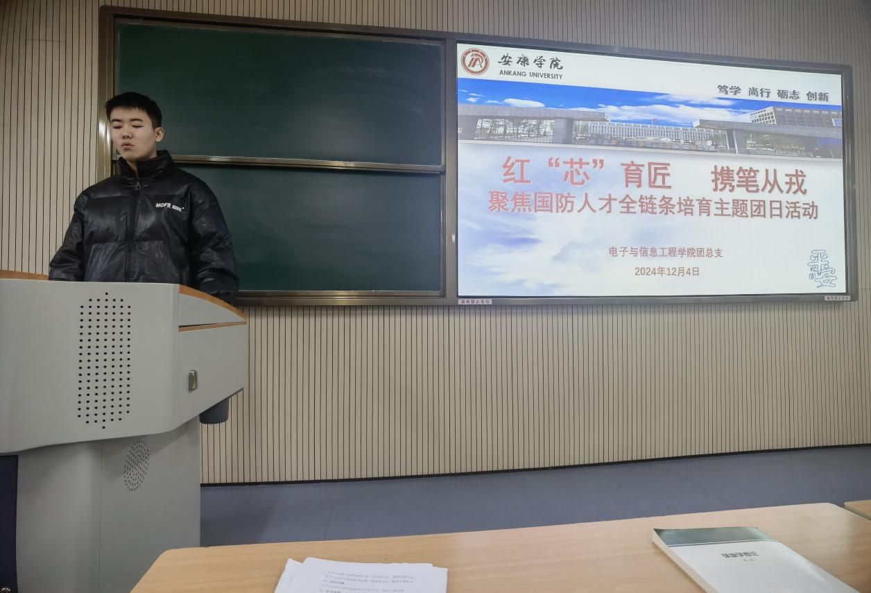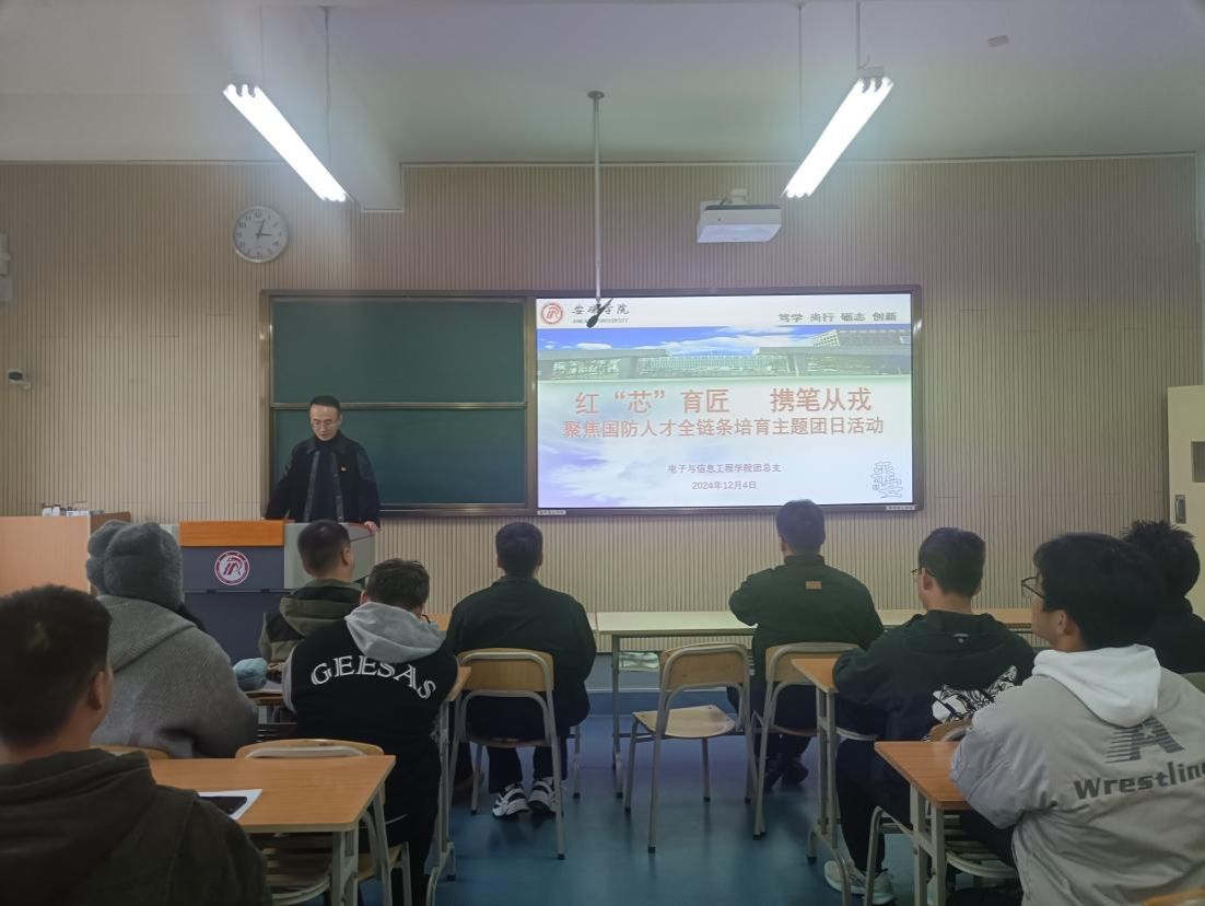 为聚焦退役大学生士兵回校后继续发扬部队‘特别能吃苦、特别能战斗、特别能奉献’的光荣传统和优良作风,引导“芯”青年牢固树立纪律规矩意识,自觉培养高尚道德情操,涵养清正廉洁的作风品行,动员更多符合强军需求的大学生青年投身国防事业,为部队输送更多有志青年。12月4日,BEAT365英国官网以“红‘芯’育匠 携笔从戎”为主题开展聚焦国防人才全链条培育主题团日活动。学院党总支书记于咏梅、学生工作办公室主任石纭昊、团总支书记张宇航、党总支组织委员成英丽、学生第一党支部书记翟子轩、学生第二党支部书记贾金兵、全院退役大学生士兵及各班级主要干部参加活动。
