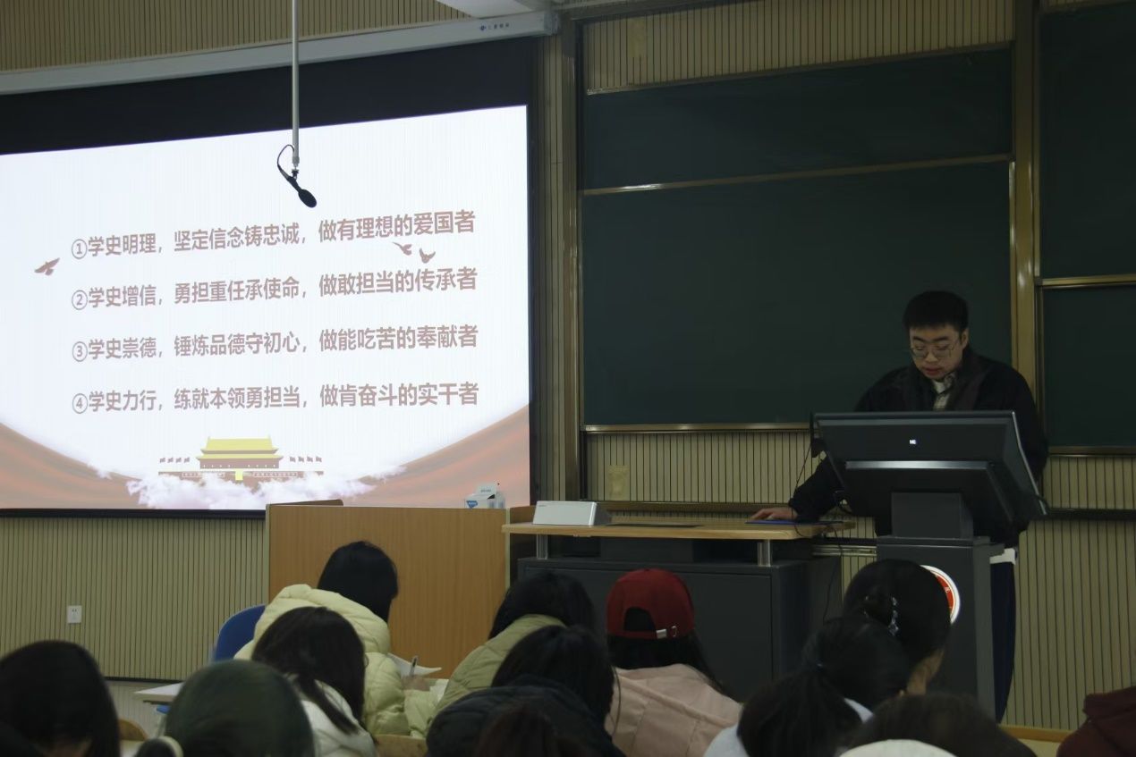 党课上,翟子轩介绍了“五史”——党史、新中国史、改革开放史、社会主义发展史、中华民族发展史的学习内容及其重要性。学生们对中国共产党的百年奋斗历程、新中国的成立和发展、改革开放的伟大实践、社会主义制度的自我完善和发展以及中华民族多元一体的历史有了更加全面和深刻的认识。