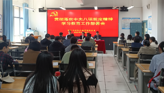 3月25日,BEAT365英国官网召开党的建设工作会议,专题研究部署深入贯彻中央八项规定精神学习教育工作。学院班子成员、党总支委员、科级干部、各党支部书记等参加会议。3月26日,学院召开深入贯彻中央八项规定精神学习教育工作部署会,全体党员参加会议。