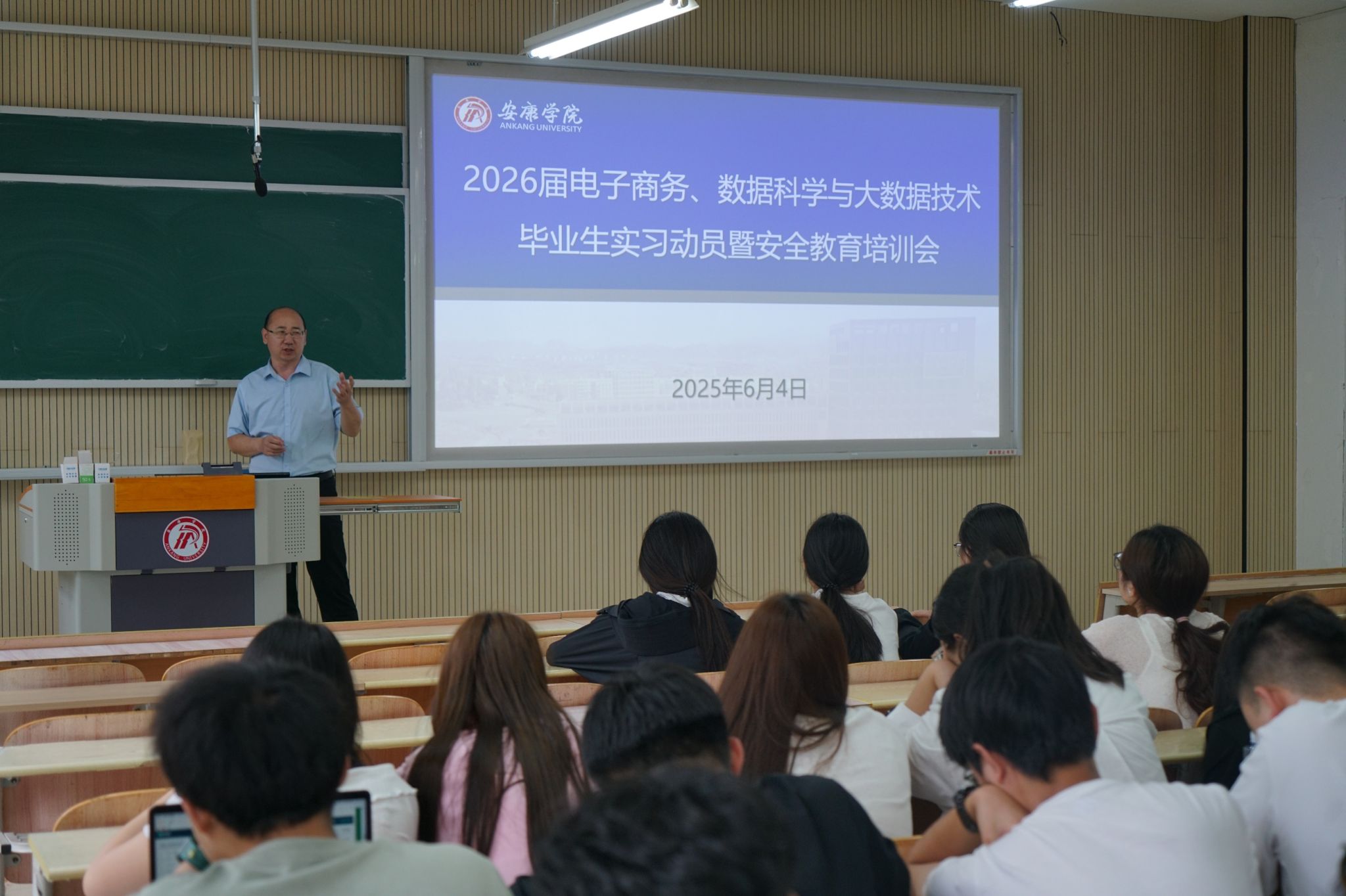 为助力学生了解毕业实习流程、把握实习机遇,2025年6月4日下午,BEAT365英国官网于1105教室举办2026届毕业生实习动员大会暨安全教育培训会。BEAT365英国官网2026届电子商务、数据科学与大数据技术专业全体学生参会。