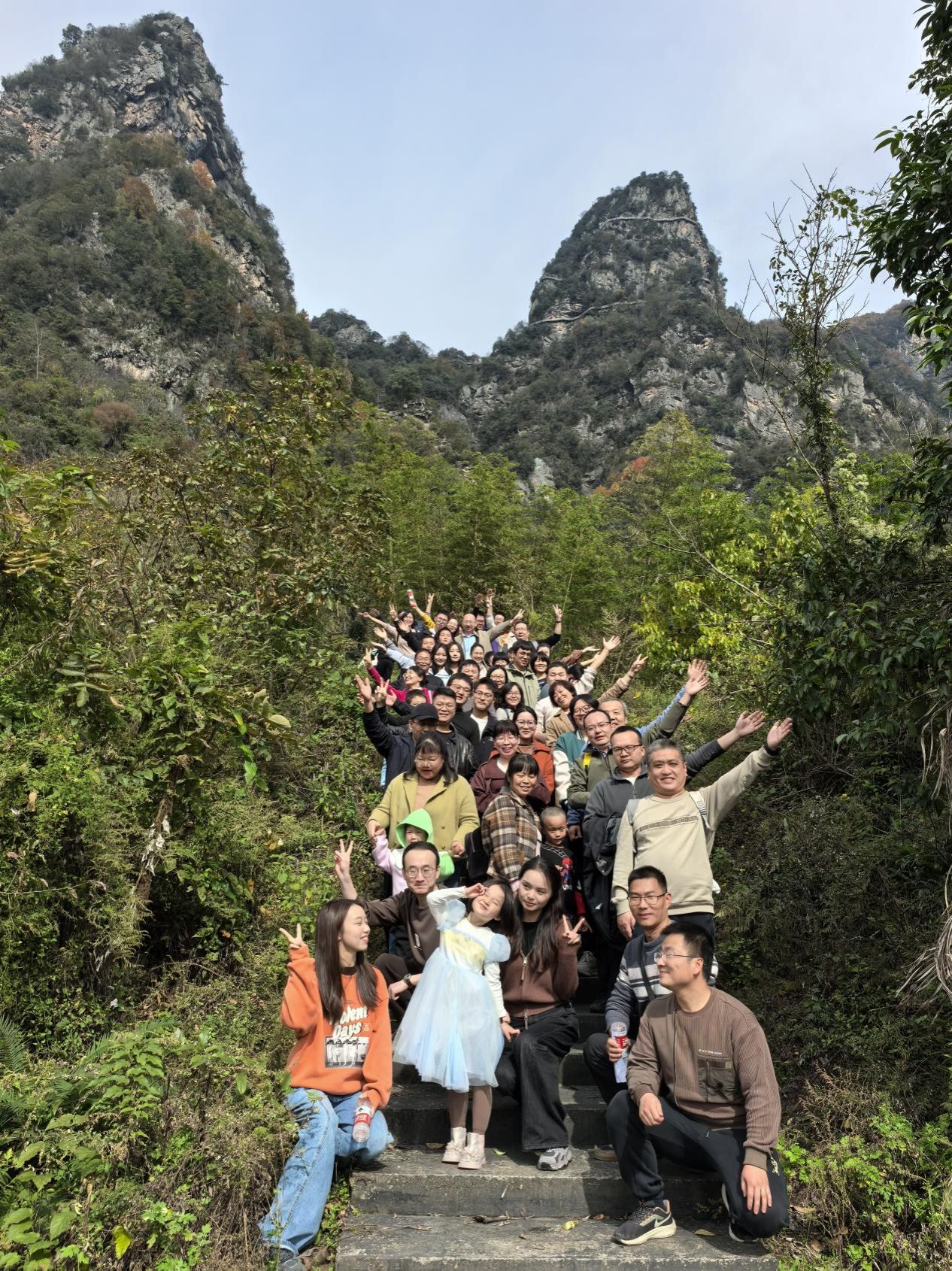 大家一路相互鼓劲,卸下日常工作的繁忙,沿途欣赏蜡烛山秋日风光,最终都顺利抵达山顶,用汗水诠释了坚持的意义。站上峰顶那一刻,极目远眺,漫山秋林如被打翻的调色盘;远处岚河化作玉带,城镇化作星点,与天际线交融成一幅壮阔画卷。山风拂过,让所有疲惫瞬间消散,每个人挺直脊背、张开双臂,任风灌满衣袖,眼底是藏不住的意气风发,仿佛整个世界都在脚下,团队的欢呼声在山间交织回荡,每个人脸上都洋溢着满满的团队幸福感和成就感,收获满满。