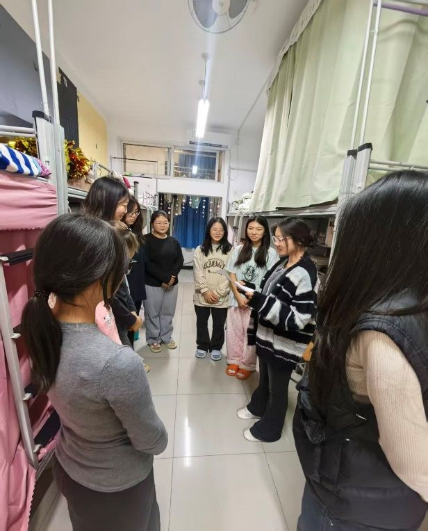 “芯”火先锋志愿服务队队员结合自身经历,在“宿舍学习氛围营造”方面,分享了如何通过设立宿舍学习小组、开展打卡互助等方式,让公寓成为知识汲取的“第二课堂”;在“专业学习规划”板块,从课程学习、技能提升到学科竞赛,为学弟学妹们绘制了清晰的专业成长路径;“求职备考经验”环节,针对考研、考公、就业等不同方向,详解备考策略与求职技巧;“宿舍关系”话题里,则以暖心故事传授人际相处之道,让公寓充满温情暖意。现场互动频繁,低年级同学踊跃提问,学长学姐耐心答疑,思想的火花在公寓里不断碰撞。