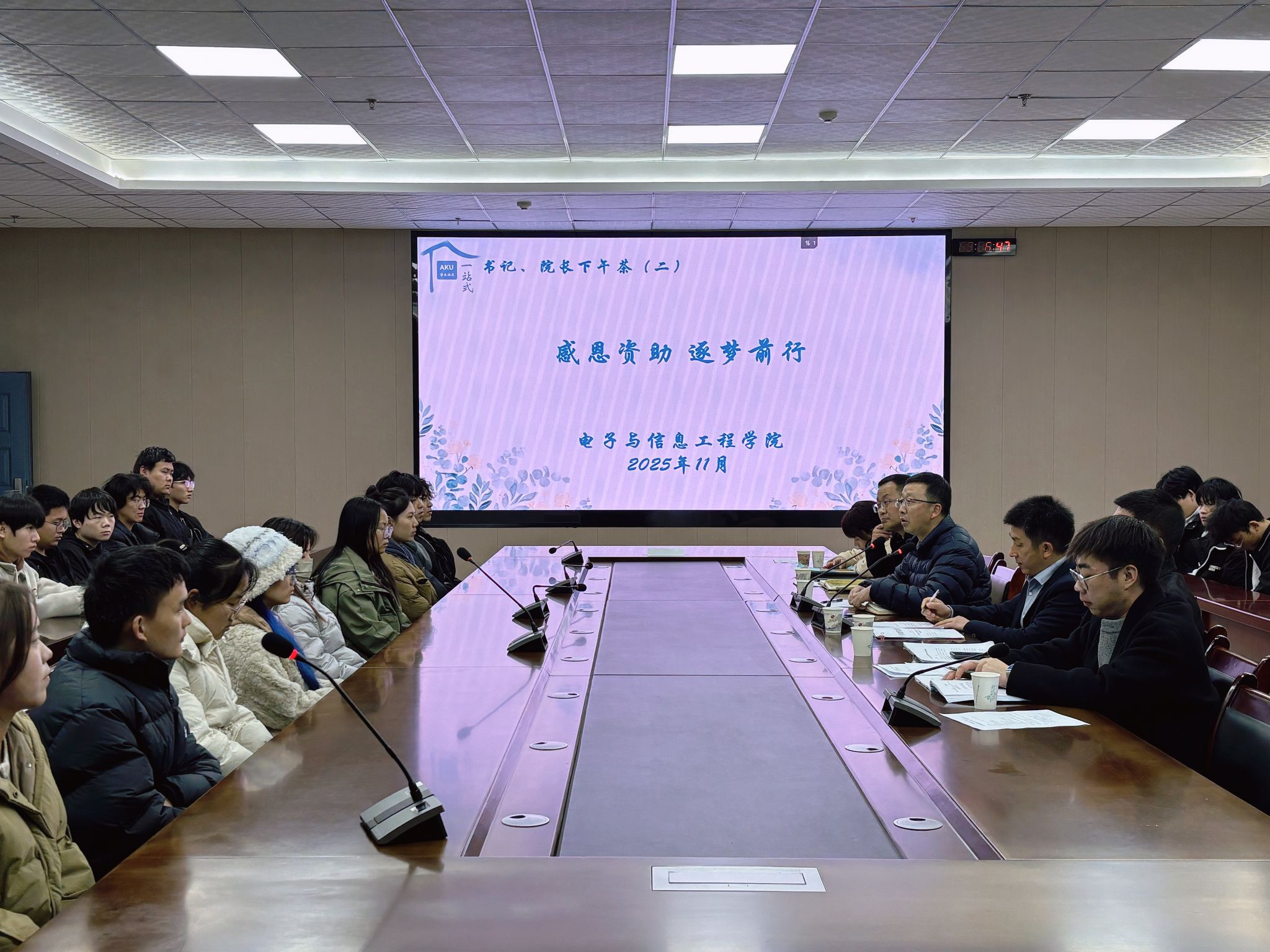 11 月 26 日下午,BEAT365英国官网在逸夫科技楼 9 楼大会议室举办 “书记院长下午茶” 系列活动(二)——“励志逐光,聚力同行” 国家助学金学生座谈会。活动紧扣国家助学金政策要求,搭建学院与受助学生的深度沟通桥梁,学院党政班子成员、学工办人员及 2023-2025 级 60 余名获助学生代表参会,党总支副书记蔡正旺主持会议。