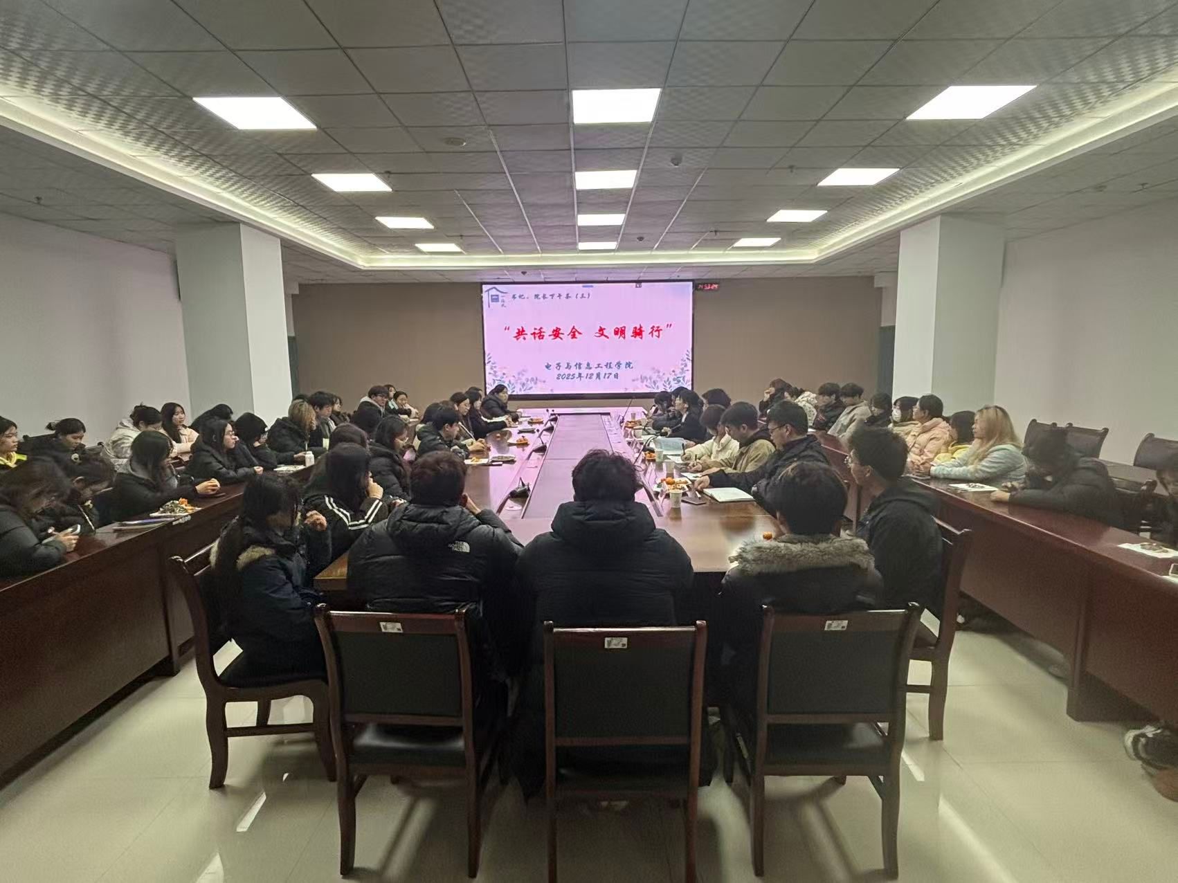 随后,学生代表电子商务24级2班王欣悦、23级1班刘雨萱结合自身参与前期专题讲座与安全测试的体会,现场表态坚决支持学校与学院的管理举措,承诺将从自身做起,带动身边同学,自觉佩戴头盔、规范骑行、有序停车,让文明骑行成为电信学子的鲜明标签。会议最后,田静书记代表学院向全体电动车车主提出明确期望:希望大家真正树立起“生命至上、规则为先”的意识,不仅要认真学规、自觉守规,更应勇于护规,成为校园文明交通的倡导者、监督者和实践者,共同维护安全有序的校园环境。